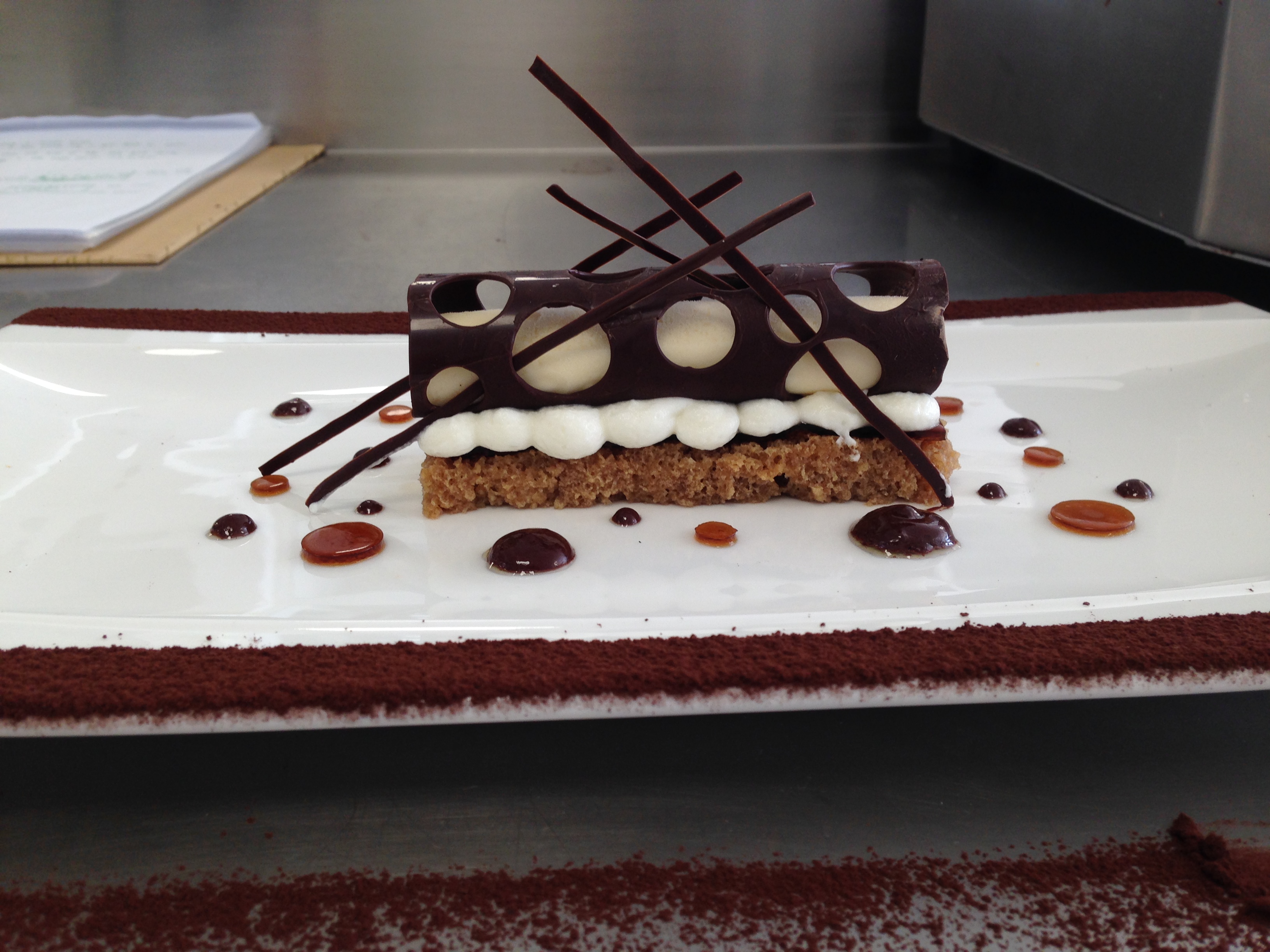 In pastry, it was “entrements” or plated dessert week. This week is really important for the students that are going on to an internship because most of them will be the dessert maker in restaurants (vs. working in a bakery – the internships are all in restaurants). For me, though, we did a lot of fancy plate decorating that I will never do (sorry, friends). We made: