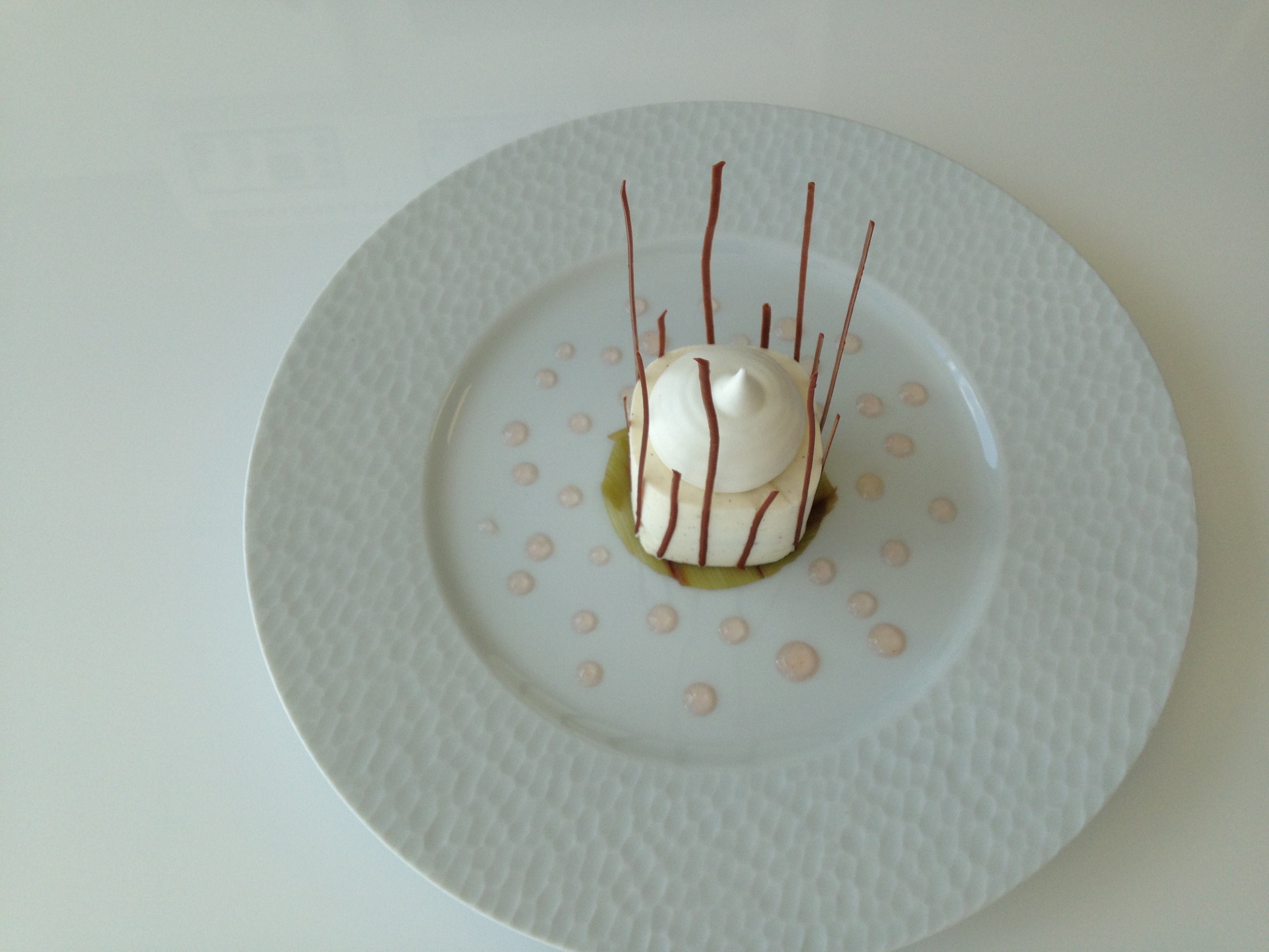 - A mont blanc “cage” – similar to the one that we made during cake week, but this one had rhubarb jam instead of clementine and a rhubarb bottom, covered in vanilla custard on the outside. Also delicious.
